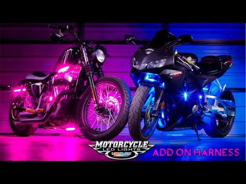 LEDGlow's Single Color Motorcycle Add-On Harness allows you to add additional lighting strips to your existing single color motorcycle kit.